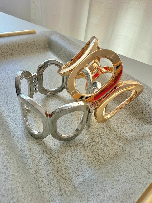 DICA MAHAOO: Não tenha medo de misturar! Use o Bracelete Oval Vazado com outros acessórios para um look que realmente se destaca.