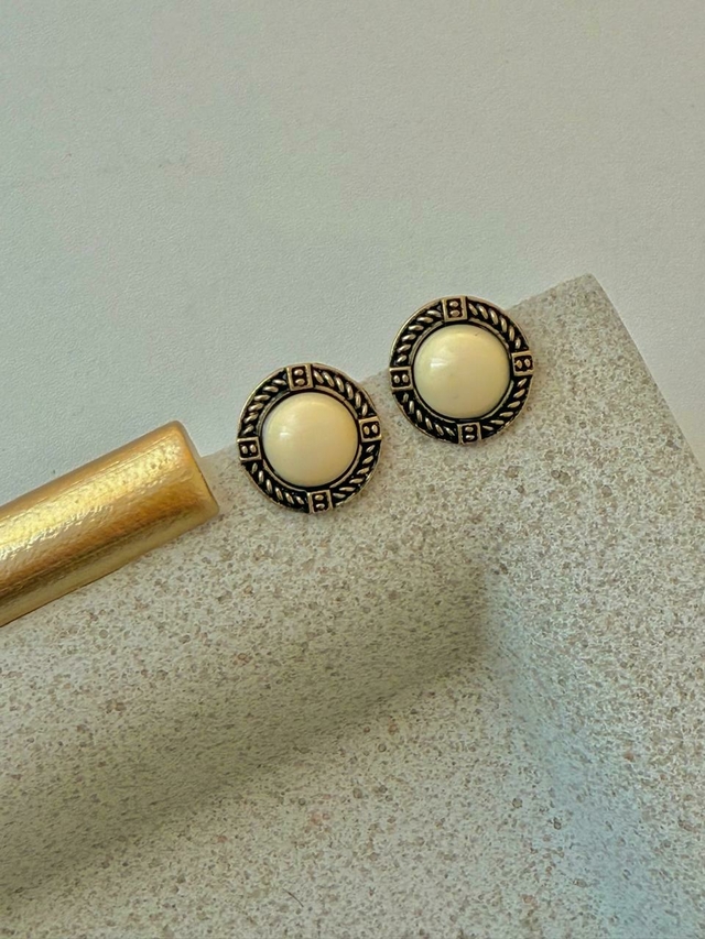 Brinco Resina Off White com base Ouro Velho