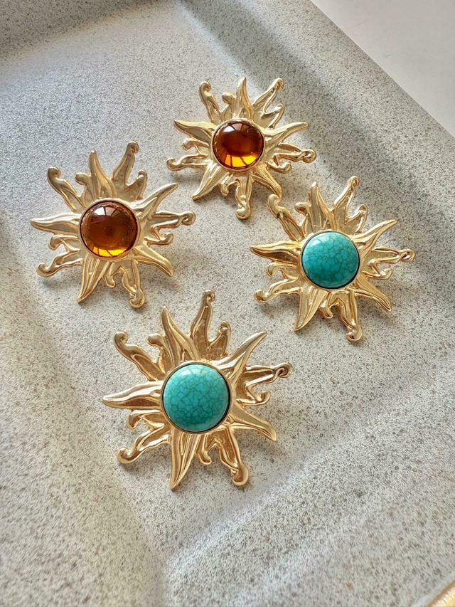 O Brinco Sol é a escolha perfeita para quem busca um toque de modernidade e estilo! Com um design diferente e estiloso, ele é perfeito para compor o look do dia ou da noite! Uma peça elegante, leve e sofisticada que vai realçar o seu estilo e trazer mais personalidade ao look. Disponível nas pedras em resina Turquesa e Caramelo.