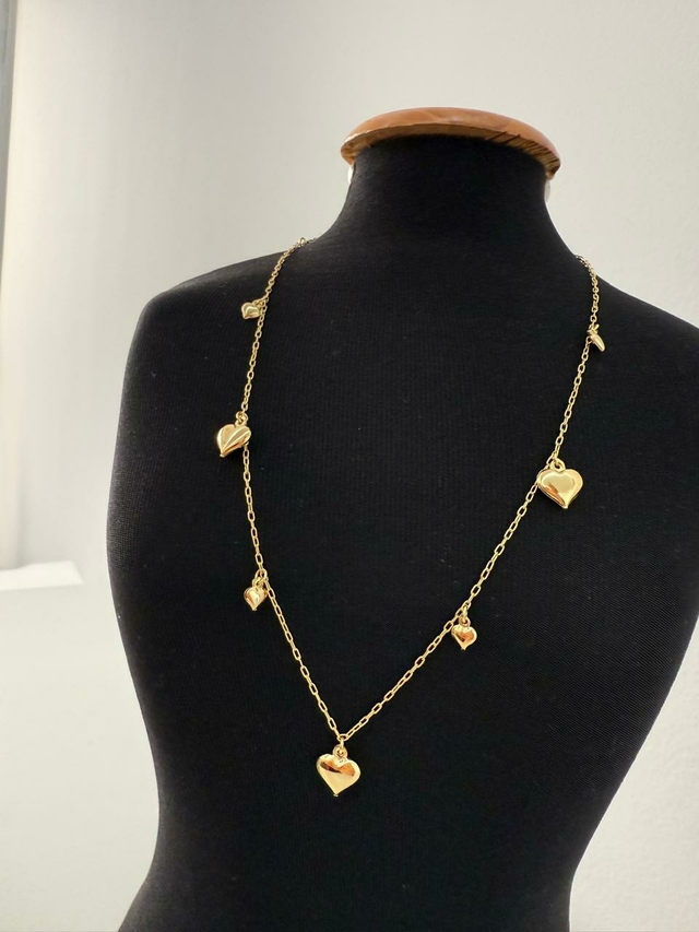 A Choker Pingente Coração é a escolha perfeita para quem busca um acessório delicado, romântico e minimalista. Com vários pingentes em formato de coração, ela traz um charme discreto e elegante que combina facilmente com qualquer look, do casual ao sofisticado. Ideal para quem valoriza um visual leve e cheio de personalidade.
