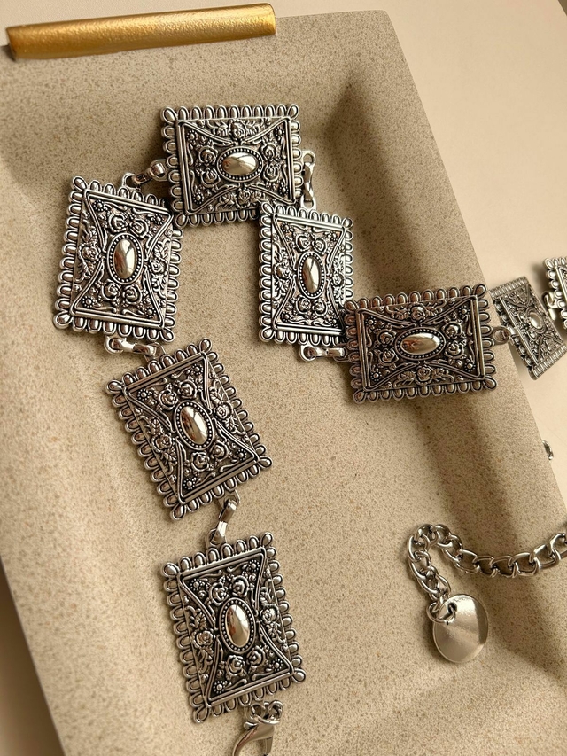 O Cinto Boho Metal Quadrado é a peça que você estava esperando para adicionar estilo, modernidade e sofisticação ao seu visual. Com um design marcante e fecho ajustável, ele se adapta perfeitamente à sua cintura ou quadril, garantindo conforto e praticidade. Seu detalhe trabalhado confere um toque especial, fazendo com que você se destaque em qualquer ocasião. Disponível apenas no prata.