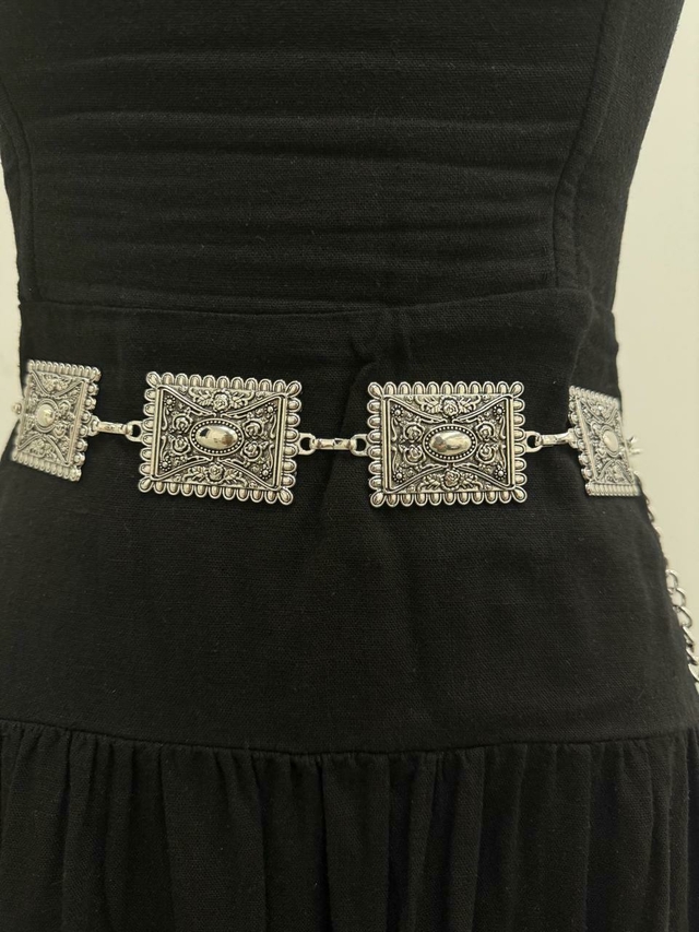 CARACTERÍSTICAS: Produzido em metal de alta qualidade, este cinto possui 1,11cm de comprimento, sendo 70cm em placa trabalhada e 41cm em correntaria para ajustar a medida do corpo. Ele é ideal para usar com vestidos fluidos, saias, calças ou lenços. Sinta-se à vontade para abusar da criatividade ao combiná-lo com suas roupas favoritas!