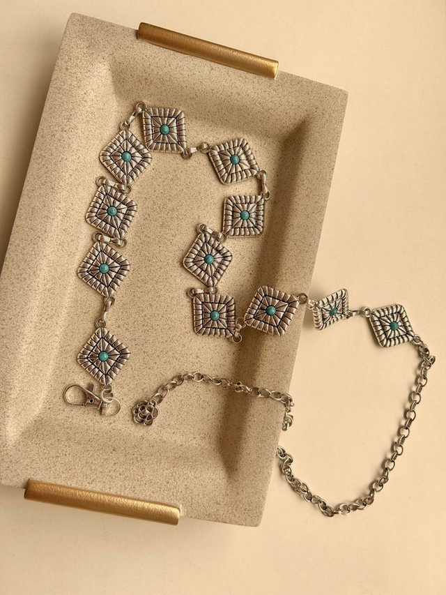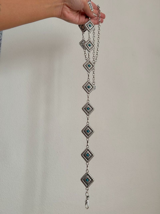 O Cinto Boho Metal Trabalhado com Pedra Turquesa é a escolha perfeita para quem busca um toque moderno e sofisticado no visual. Com um design que se destaca com a pedra em cor turquesa, este cinto é ideal para complementar seu estilo boho chic.