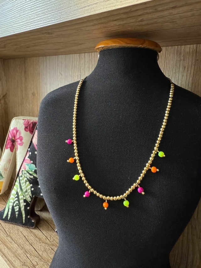 Fácil de combinar e adequado para todos os estilos, o Colar Mini Esferas Coloridas se destaca pela sua versatilidade. Seja para um dia casual ou uma ocasião especial, ele se adapta perfeitamente ao seu visual. Não deixe de transformar seu look com esse acessório encantador! Com certeza, ele se tornará um item indispensável em seu porta-joias.