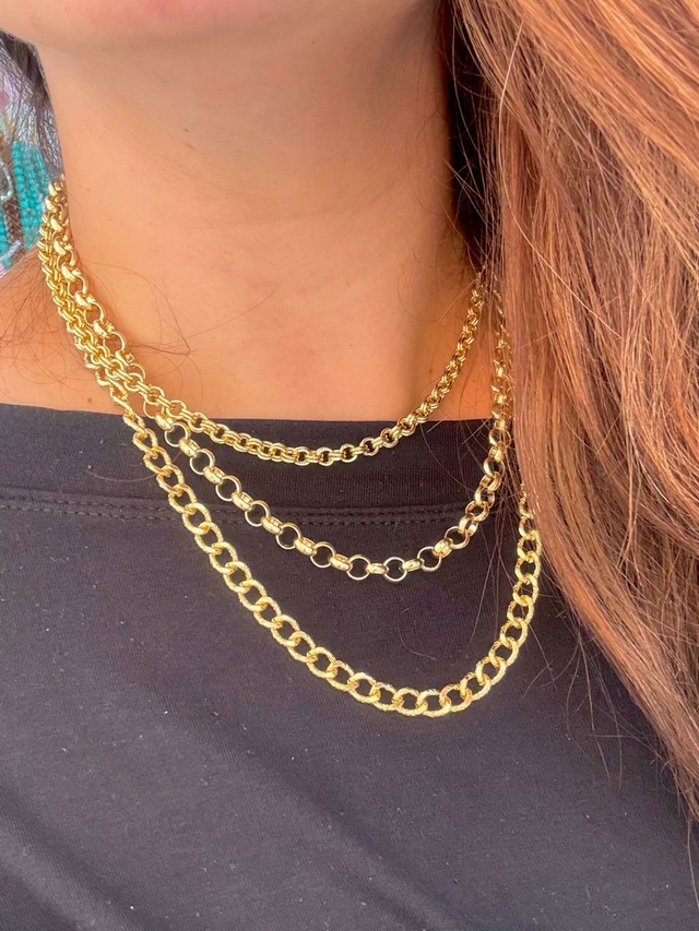 A Corrente Tripla Multi Elos é a escolha perfeita para quem ama um pescoço cheio de estilo e sofisticação! Composta por três camadas de correntes de diferentes elos unidas por um único fecho. Essa corrente se destaca pela sua modernidade e elegância. com um design ousado que transforma qualquer look.