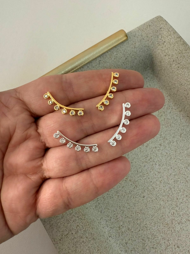 Peça folheada disponível no dourado e prata, o ear cuff se destaca pela sua facilidade de combinação. As 6 micro zircônias trazem um brilho especial, tornando-o uma escolha versátil e elegante para todas as ocasiões.