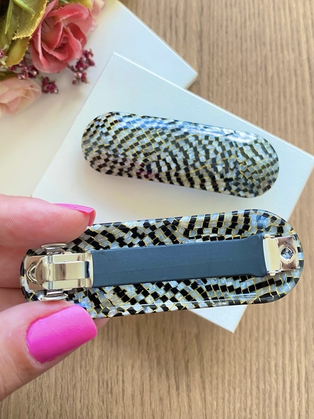 Essa presilha é a solução perfeita para quem não quer abrir mão do estilo ao prender o cabelo! Com um design diferenciado, suas pontas arredondadas e base larga trazem um charme único, diferente das presilhas tradicionais.